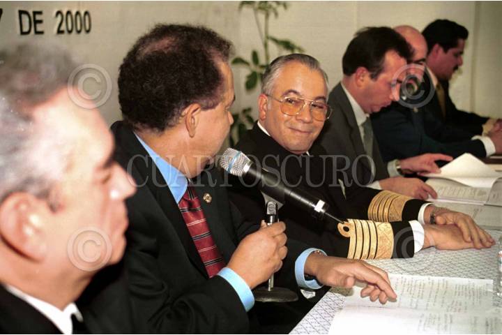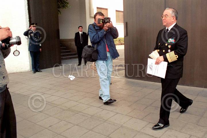 Ricardo Clemente Vega García, secretario de la Defensa Nacional, y Marco Antonio Peyrot, secretario de la Marina, llegaron juntos al Palacio Legislativo de San Lázaro, para escuchar el segundo Informe de Gobierno de Vicente Fox. FOTO: Oswaldo Ramírez/CUARTOSCURO.COM