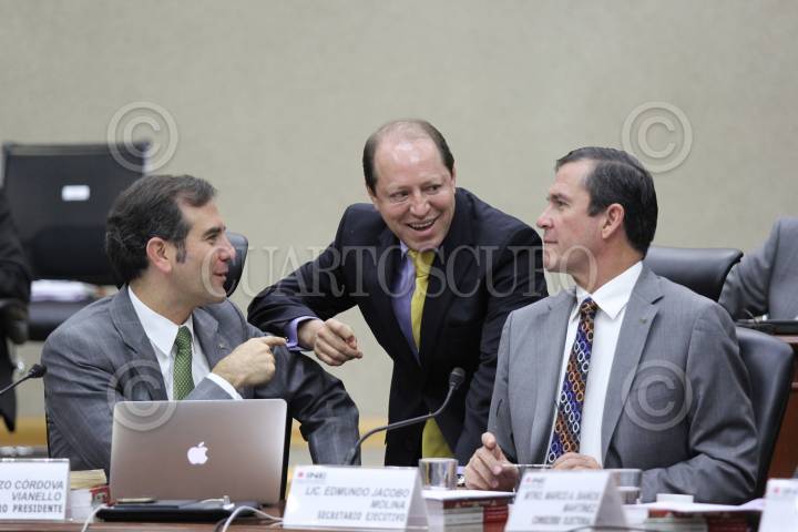 CIUDAD DE MÉXICO, 28JUNIO2017.- Lorenzo Córdova Vianello, consejero presidente del Instituto Nacional Electoral (INE); Marco Antonio Baños, consejero electoral, y Edmundo Jacobo, secretario ejecutivo, durante la sesión extraordinaria del instituto. FOTO: GALO CAÑAS /CUARTOSCURO.COM