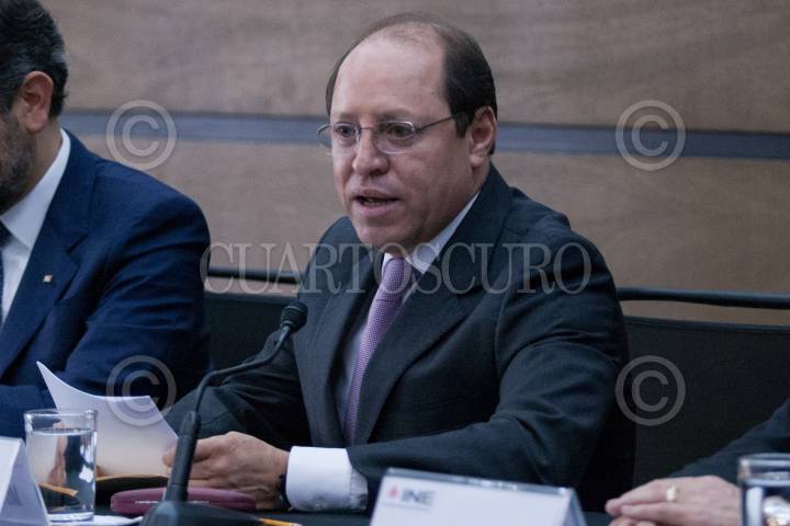 CIUDAD DE MÉXICO, 28JUNIO2017.- Enrique Andrade González, consejero electoral; Lorenzo Córdova Vianello, consejero presidente del Instituto Nacional Electoral (INE); Edmundo Jacobo, secretario ejecutivo, y Marco Antonio Baños, consejero electoral, durante la sesión extraordinaria del instituto. FOTO: GALO CAÑAS /CUARTOSCURO.COM