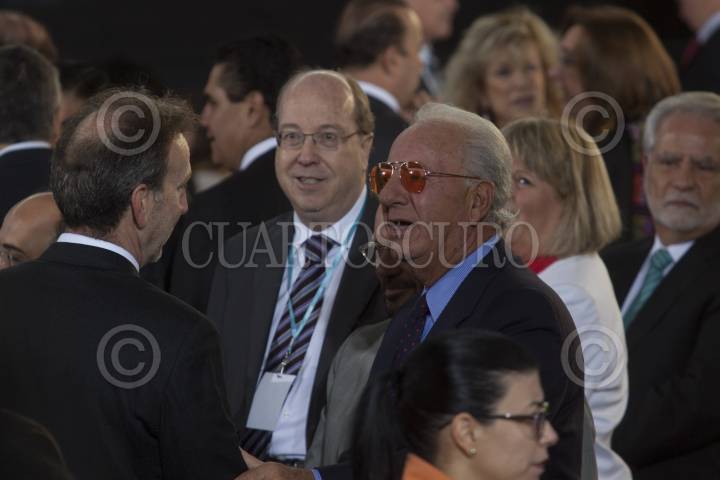 MÉXICO, D.F., 03MAYO2013.- Tony Garza, ex-embajador de los Estados Unidos, y Marcos Fastlicht, durante el mensaje que el ofreció el Presidente de los Estados Unidos Barack Obama, en el Museo de Antropología. FOTO: MOISÉS PABLO /CUARTOSCURO.COM