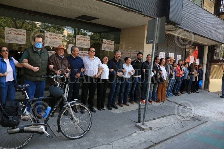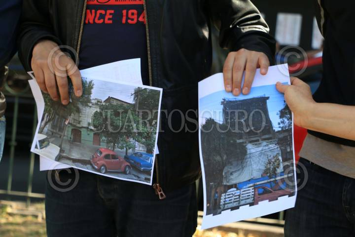 CIUDAD DE MÉXICO, 28ENERO2017.- Vecinos de la colonia Hipódromo Condesa acompañado de diputados locales del PAN y PRD protestaron a las fueras del edificio ubicado en la avenida Nuevo León 238 donde construyeron un helipuerto en la azotea del inmueble siendo que la colonia solo se autoriza uso de suelo habitacional. FOTO: SAÚL LÓPEZ /CUARTOSCURO.COM