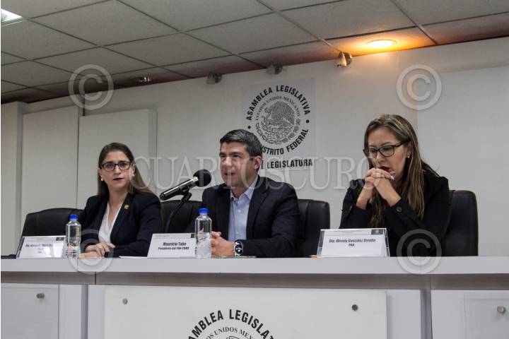 CIUDAD DE MÉXICO, 21JUNIO2017.- La diputada Margarita Martínez Fisher, el presidente del Partido Acción Nacional (PAN) en la Ciudad de México, Mauricio Tabe y la diputada Wendy González Urrutia ofrecieron conferencia de prensa para proclamarse a favor de que continúe la construcción de la Línea 7 del Metrobús pero con una mayor integración y atención de las denuncias ciudadanas. FOTO: GALO CAÑAS /CUARTOSCURO.COM