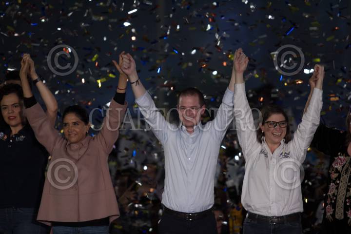 CIUDAD DE MÉXICO, 13JUNIO2018.- Ricardo Anaya Cortés, candidato a la presidencia de la República por la coalición “Por México al Frente” sostuvo una reunión en el deportivo Plan Sexenal con los vecinos de la delegación Miguel Hidalgo. Acompañado de Mariana Gómez del Campo, candidata a diputada federal; Alejandra Barrales, candidata a jefe de gobierno por la coalición “Por la CDMX al Frente”, y Margarita Martínez Fisher, candidata a alcaldesa de dicha delegación, Anaya Cortés sostuvo que el fue el ganador del debate del día de ayer y que el primero de julio le ganaran la elección al PRIMOR (PRI-Morena). FOTO: GALO CAÑAS /CUARTOSCURO.COM