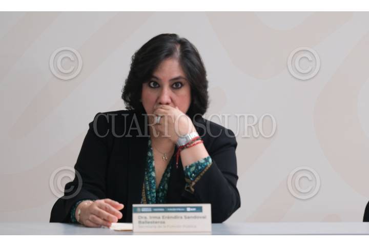 CIUDAD DE MÉXICO, 18JULIO2019.- Irma Erendira Sandoval, secretaria de Función Pública, durante la firma de convenio entre el SAT y la secretaría de la Función Pública, el cual será un intercambio de  información para investigar las obligaciones fiscales de los funcionarios, contratistas y proveedores para detectar movimientos de corrupción, el acto se realizó en las instalaciones del SAT. FOTO: GRACIELA LÓPEZ /CUARTOSCURO.COM