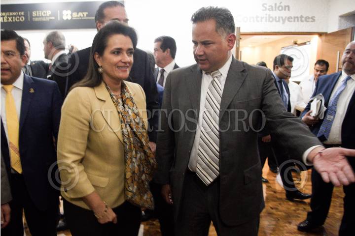 CIUDAD DE MÉXICO, 24SEPTIEMBRE2019.- Margarita Ríos-Farjat jefa del Servicio de Administración Tributaria (SAT), y Santiago Nieto Castillo, titular de la Unidad de Inteligencia Financiera (UIF), encabezaron conferencia de prensa tras haber sostenido una reunión con el Consejo Directivo Nacional de la Cámara Nacional de la Industria de la Transformación (Canacintra), en la que el tema central fue fijar su postura después de que diputados reformaran el artículo 28 constitucional el cual prohíben la condonación de impuestos. FOTO: MARIO JASSO /CUARTOSCURO.COM