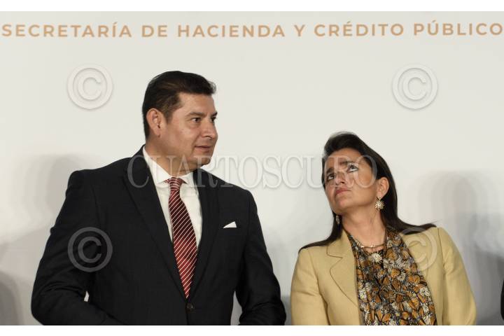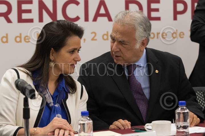 CIUDAD DE MÉXICO, 24SEPTIEMBRE2019.- Alejandro Armenta Mier, senador de Morena y presidente de la Comisión de Hacienda y Crédito Público, y Margarita Ríos-Farjat jefa del Servicio de Administración Tributaria (SAT), encabezaron conferencia de prensa tras haber sostenido una reunión con el Consejo Directivo Nacional de la Cámara Nacional de la Industria de la Transformación (Canacintra), en la que el tema central fue fijar su postura después de que diputados reformaran el artículo 28 constitucional el cual prohíben la condonación de impuestos. FOTO: MARIO JASSO /CUARTOSCURO.COM