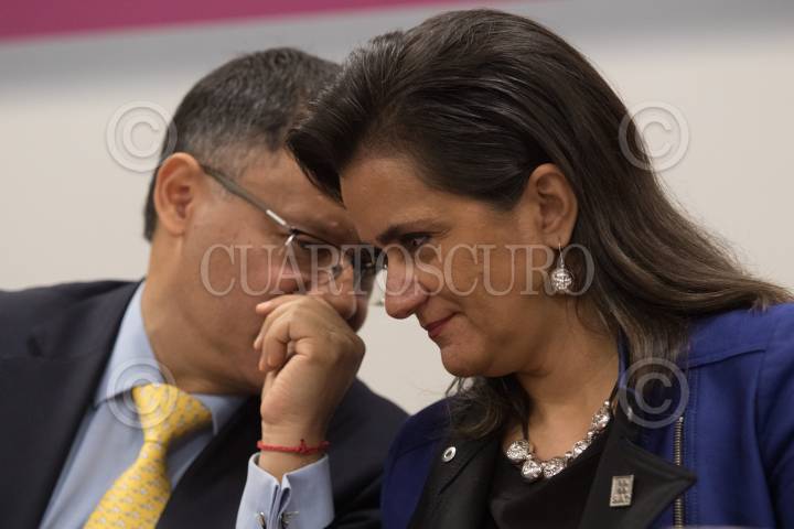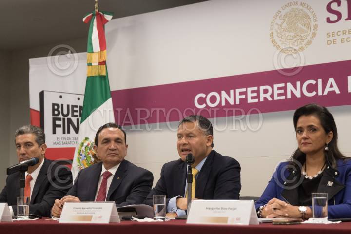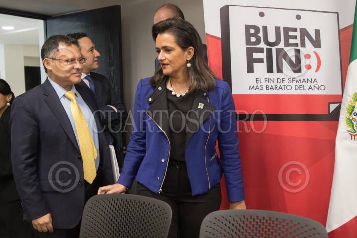 CIUDAD DE MÉXICO, 08MAYO2019.- Ernesto Acevedo Fernández, subsecretario de Economía, y Margarita Ríos-Farjat, jefa del Servicio de Administración Tributaria (SAT), ofrecieron una conferencia de prensa para hablar sobre el Buen Fin, que cada año se realiza a mediados del mes de noviembre y en el cual los comercios ofrecen atractivos descuentos en un sin fin de artículos. FOTO: MOISÉS PABLO /CUARTOSCURO.COM