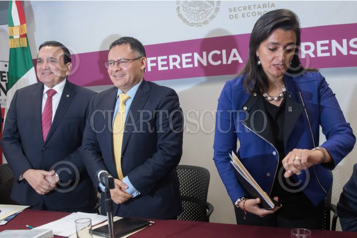 CIUDAD DE MÉXICO, 08MAYO2019.- José Manuel López Campos, presidente de la Concanaco Servytur; Ernesto Acevedo Fernández, subsecretario de Economía, y Margarita Ríos-Farjat, jefa del Servicio de Administración Tributaria (SAT), ofrecieron una conferencia de prensa para hablar sobre el Buen Fin, que cada año se realiza a mediados del mes de noviembre y en el cual los comercios ofrecen atractivos descuentos en un sin fin de artículos. FOTO: MOISÉS PABLO /CUARTOSCURO.COM