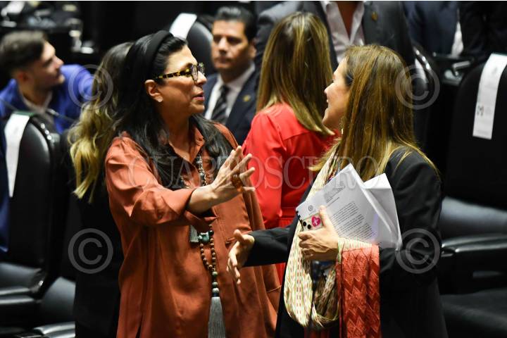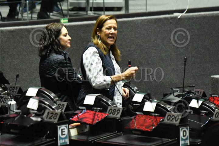 CIUDAD DE MÉXICO, 18SEPTIEMBRE2024.- Marcela Guerra, diputada del PRI, y Margarita Zavala, diputada del PAN, durante la sesión ordinaria de la Cámara de Diputados en la que se aprobó la reforma que planea reconocer a los pueblos y comunidades indígenas y afromexicanos, como sujetos de derecho público. FOTO: MARIO JASSO/CUARTOSCURO.COM