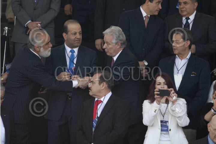 MÉXICO, D.F., 02JUNIO2012.- Diego Fernández de Cevallos, Héctor Slim Seade, Alejandro Martí y Carlos Peralta, durante la ceremonia del Día del Policía en el Centro del Mando de la Policía Federal. FOTO: MOISÉS PABLO /CUARTOSCURO.COM