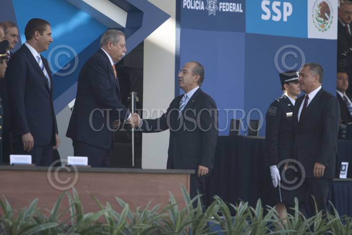 MÉXICO, D.F., 02JUNIO2012.- El Jefe del Ejecutivo Felipe Calderón Hinojosa, encabezó la celebración del Día del Policía en el Centro del Mando de la Policía Federal. FOTO: MOISÉS PABLO /CUARTOSCURO.COM