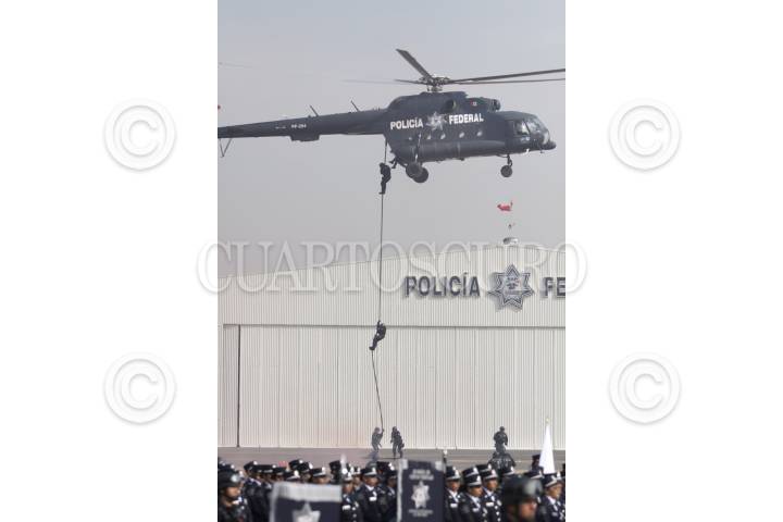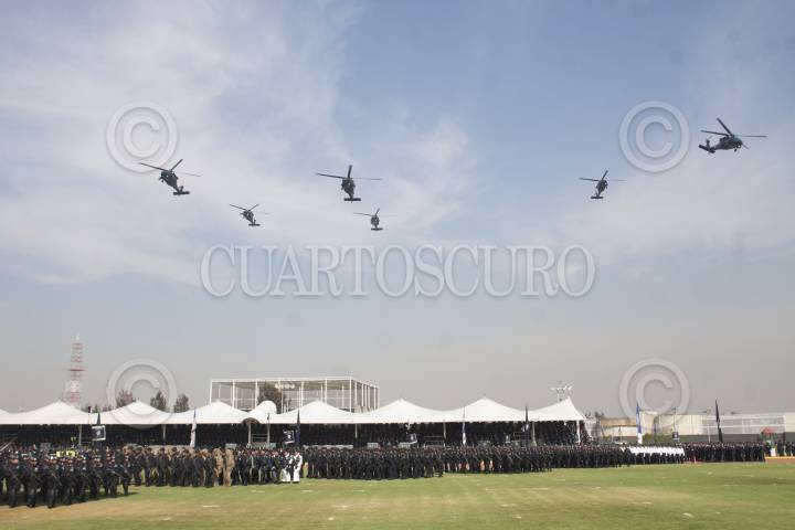 MÉXICO, D.F., 02JUNIO2012.- En el Centro del Mando de la Policía Federal se realizó un desfile y demostración táctica de helicópteros Black Hawk como parte de la ceremonia del Día de la Policía encabezada por el Jefe del Ejecutivo Felipe Calderón Hinojosa. FOTO: MOISÉS PABLO /CUARTOSCURO.COM