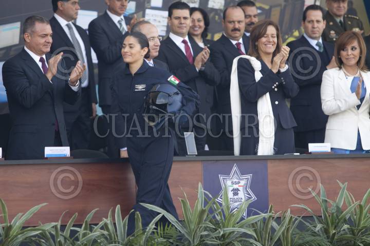 MÉXICO, D.F., 02JUNIO2012.- La policía federal Emi Nieto Estrada recibió sus alas como piloto de un helicóptero Black hawk, durante la ceremonia del Día del Policía en el Centro del Mando de la Policía Federal. El presidente de México Felipe Calderón Hinojosa entregó condecoraciones a elementos detscados durante el protocolo. FOTO: MOISÉS PABLO /CUARTOSCURO.COM
