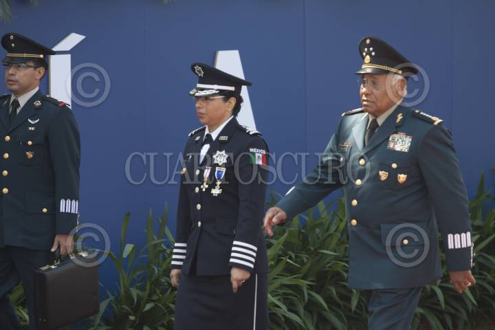 MÉXICO, D.F., 02JUNIO2012.- Maribel Cervántes Guerrero, comisionada general de la Policía Federal, y Guillermo Galván Galván, secretario de la Defensa, al finalizar la ceremonia del Día del Policía en el Centro del Mando de la Policía Federal. FOTO: MOISÉS PABLO /CUARTOSCURO.COM