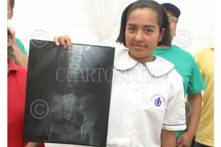 CHALCO EDOMEX.- 08ABRIL2007.- La alumna de la Villa de las Niñas Karla Noriko Juarez muestras unas placas donde muestra que no tiene ninguna fractura o enfremedad en sus piernas. FOTO: SAÚL LÓPEZ/CUARTOSCURO.COM