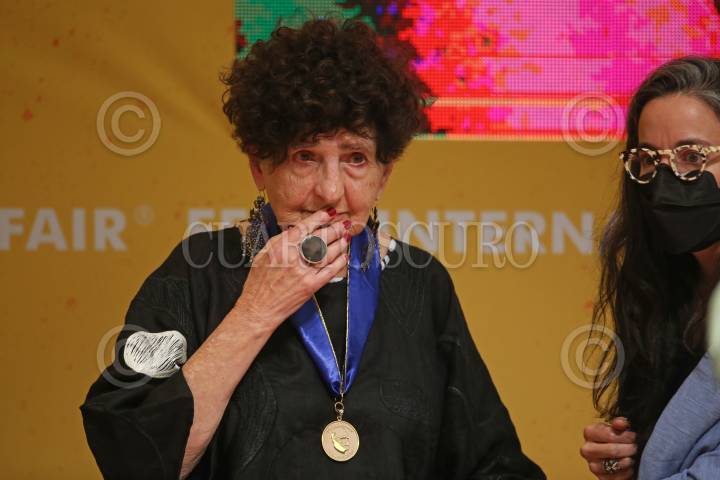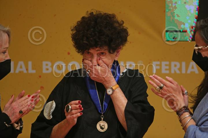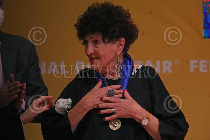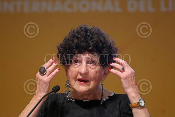 Margo Glantz, escritora mexicana durante el evento previo a la entrega de la medalla Carlos Fuentes, esto en el marco de la edición 35 de la FIL.