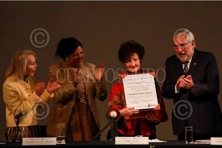 La escritora mexicana Margo Glantz (1930) recibió esta mañana el Premio Internacional Carlos Fuentes a la Creación Literaria en el Idioma Español 2022 que otorgan la Secretaría de Cultura federal y la Universidad Nacional Autónoma de México (UNAM). La ceremonia realizada en la sala Manuel M. Ponce del Palacio de Bellas Artes, estuvo presidida por: la periodista Silvia Lemus, viuda de Carlos Fuentes; la secretaria de Cultura del Gobierno de México, Alejandra Frausto Guerrero; el rector de la UNAM, Enrique Graue Wiechers, y la escritora Liliana Weinberg, como representante del jurado.