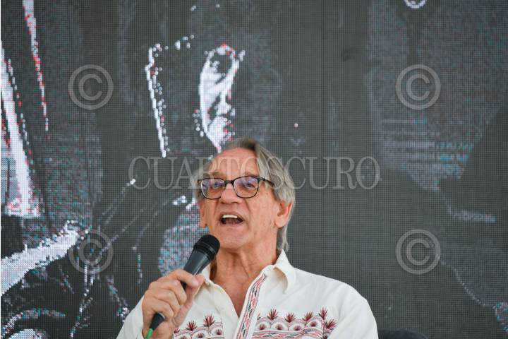 CIUDAD DE MÉXICO, 15JUNIO2024.- Alberto Muy-Sánchez, editor y escritor mexicano, durante su intervención como parte de las actividades de la Feria Internacional del Libro en Coyoacán (FILCO), realizado en el Jardín Hidalgo. FOTO: MARIO JASSO/CUARTOSCURO.COM