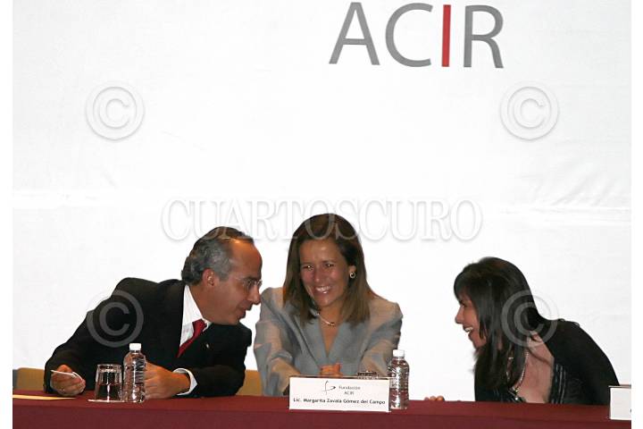 MÉXICO D.F. 06FEBRERO2008.- El presidente Felipe Calderón Hinojosa, corversa con su esposa Margarita Zavala y Mari Carmen Ibarra Fariña conversan durante la presentación de la fundación ACIR, realizado en el Museo Nacional de Antropologia e Historia. FOTO: SAÚL LÓPEZ/CUARTOSCURO.COM