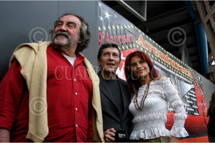 MÉXICO D.F. 09AGOSTO2006.- Los actores, Pedro Armendariz, Juan Ferrara, acompañados de Mari "Boquitas".durante la conferencia de presnsa donde dieron a conocer detalles de las presentaciones en el Auditorio, por el 9o. aniversario de la obra "Aventurara". FOTO:Guillermo Perea/CUARTOSCURO.COM