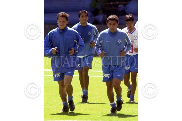 Luego de la victoria ante Pumas el domingo pasado, los jóvenes jugadores de Cruz Azul entrenan con miras a su próximo partido y quieren dejar atras la situación de los 11 jugadores que salieron de la institución y clasificar a la liguilla del futbol mexicano. En la imágen, Marinho Ledezma y Norberto Ángeles. FOTO: Pedro Mera/CUARTOSCURO.COM