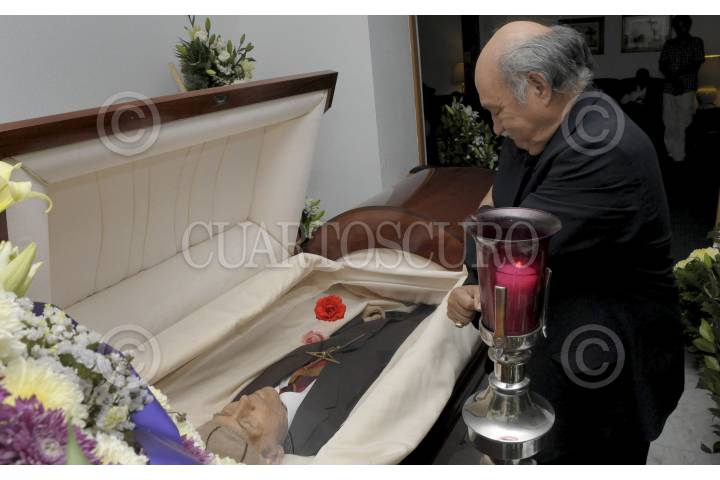 MÉXICO, D.F., 02JUNIO2012.- El fotógrafo Héctor García es velado en una funeraria al sur de la capital. Sus restos son acompañados por su inseparable María García, hijos y amigos del gremio. El "fotógrafo de la calle" murió de una insuficiencia cardíaca a los 88 años. FOTO: PATRICIA JUÁREZ /CUARTOSCURO.COM