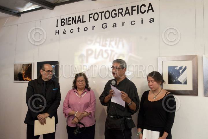 MÉXICO, D.F., 02JUNIO2013.- María García y Héctor García (hijo), durante un homenaje a un año de la muerte del fotógrafo mexicano Héctor García y que la fundación que lleva el mismo nombre organiza como parte de las actividades que realizará dicha fundación para conmemorar su trayectoria. FOTO: MISAEL VALTIERRA / CUARTOSCURO.COM