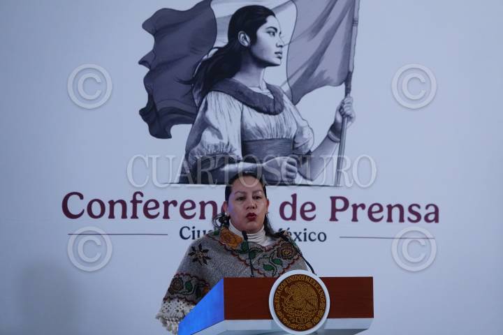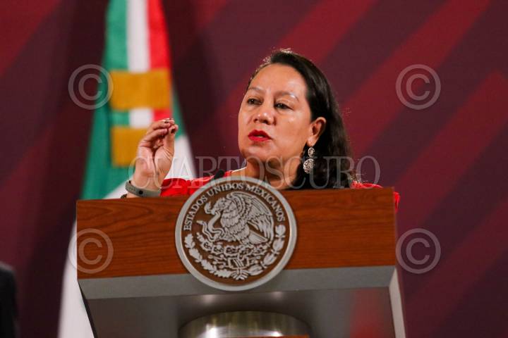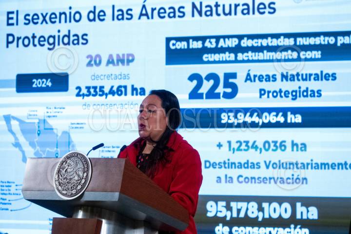 CIUDAD DE MÉXICO, 09ENERO2024.- María Luisa Albores, secretaria de Medio Ambiente y Recursos Naturales, participó en la conferencia matutina desde Palacio Nacional para dar detalles sobre las áreas naturales protegidas a lo largo del territorio. FOTO: GALO CAÑAS/CUARTOSCURO.COM