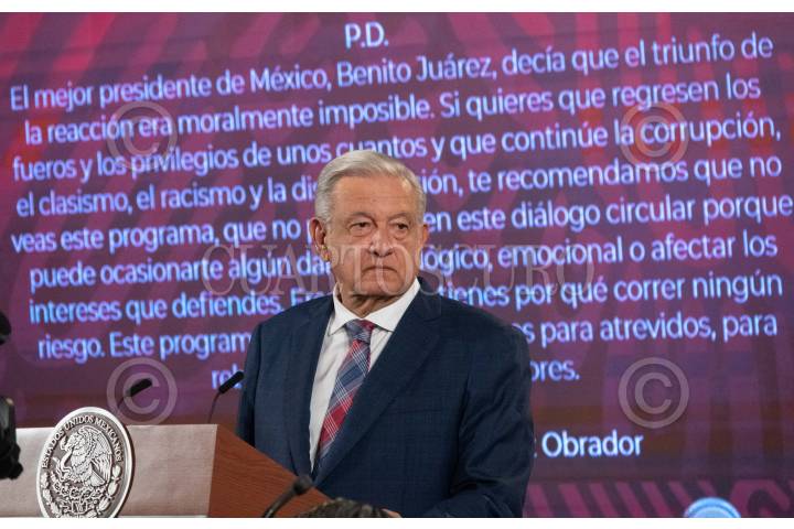 CIUDAD DE MÉXICO, 05OCTUBRE2023.- Andrés Manuel López Obrador, presidente de México, contestó preguntas de los comunicadores durante la conferencia de prensa matutina desde Palacio Nacional FOTO: GALO CAÑAS/CUARTOSCURO.COM