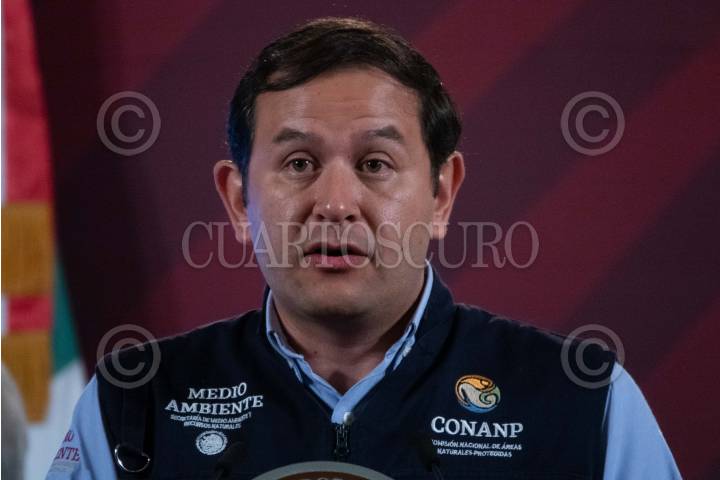 CIUDAD DE MÉXICO, 09ENERO2024.- Adán Peña Fuentes, titular de la Comisión de Áreas Naturales Protegidas (Conanp), participó en la conferencia matutina desde Palacio Nacional para dar detalles sobre las áreas naturales protegidas a lo largo del territorio. FOTO: GALO CAÑAS/CUARTOSCURO.COM