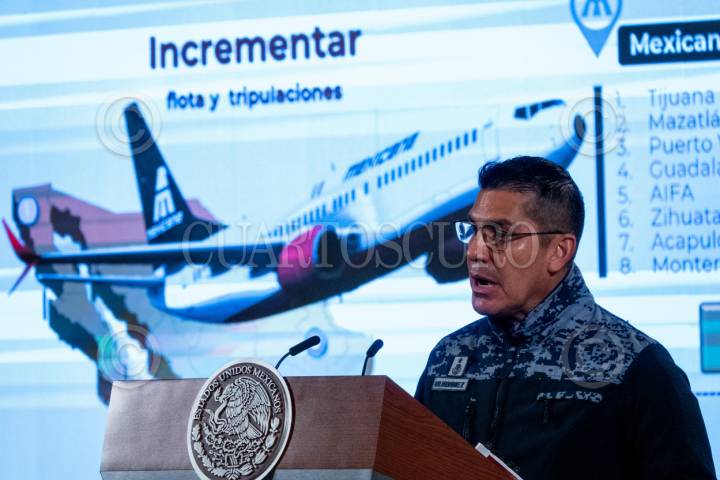 CIUDAD DE MÉXICO, 09ENERO2024.- Leobardo Ávila Bojórquez, subdirector general de Mexicana de Aviación, durante la conferencia matutina para informar sobre el avance de la aerolínea desde su inauguración el pasado 26 de diciembre de 2023. FOTO: GALO CAÑAS/CUARTOSCURO.COM