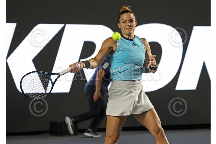 ZAPOPAN, JALISCO, 19SEPTIEMBRE2023.- Esta noche en las instalaciones del Centro Panamericano de Tenis, en donde se lleva a cabo el Torneo Guadalajara Open WTA 1000, se enfrentaron en partido eliminatorio las tenistas Storm Hunter (AUS) vs Maria Sakkari (GRECIA), en donde al final la tenista Griega se llevo la victoria. FOTO: FERNANDO CARRANZA GARCIA / CUARTOSCURO.COM