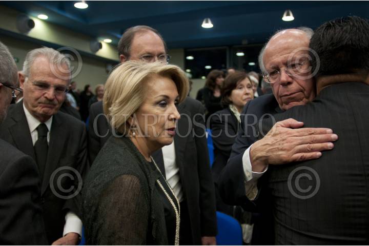 MÉXICO, D.F., 31MARZO2012.- El rector, José Narro Robles, se despide de María Teresa Ugarte, Directora de Difusión Cultural UNAM y de su marido, Francisco Labastida Ochoa, ex candidato a la Presidencia de la República en el 2000 por el PRI, una ves finalizado el homenaje de cuepo presente realizado a Jorge Carpizo, ex recotr de la UNAM de 1985 a 1989 y que murio la tarde de ayer a los 67 años de edad víctima de una complicación preoperatoria a una ernia. Los restos del también Secretario de Gobernación en el sexenio de Carlos Salinas de Gortari serán cremados el día de hoy en los velatorios del ISSSTE al sur de la ciudad. FOTO: FRANCISCO RODRÍGUEZ /CUARTOSCURO.COM