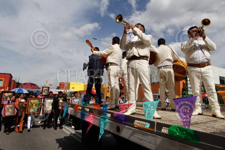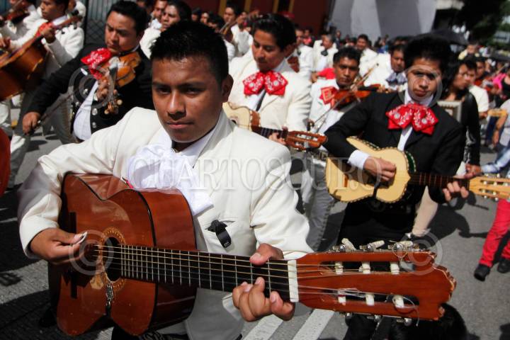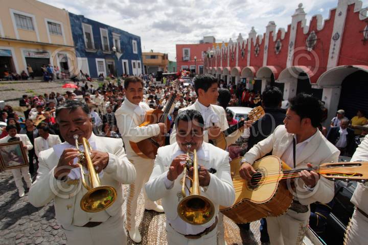 PUEBLA, PUEBLA. 22NOVIEMBRE2015.- Como cada año, músicos y mariachis festejaron con misa y desfile el día de Santa Cecilia, santa patrona de los músicos en la plaza del alto. FOTO: HILDA RIOS /CUARTOSCURO.COM