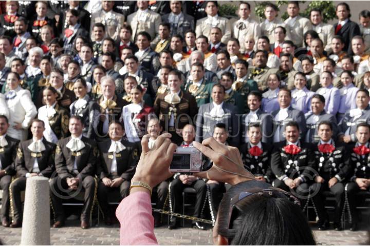 GUADALAJARA, JALISCO. 9SEPTIEMBRE2006.- En el marco del décimo tercer encuentro internacional del mariachi el día de hoy se tomaron la foto oficial todos los grupos de mariachis invitados. FOTO: JOSÉ MARÁ MARTÍNEZ/CUARTOSCURO.COM