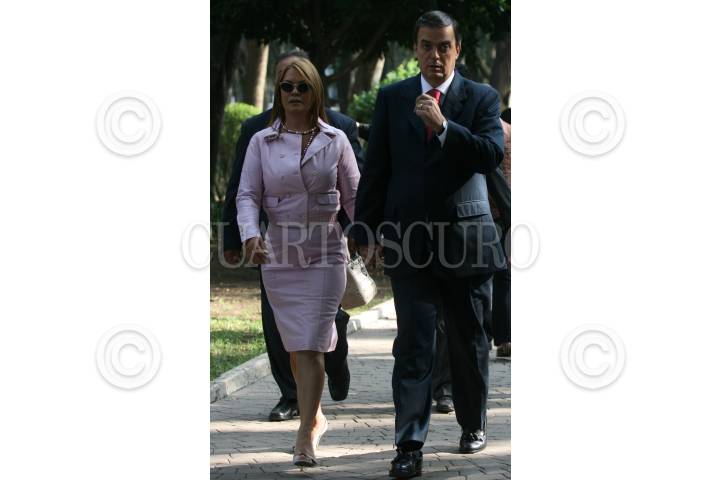MÉXICO, D.F., 20OCTUBRE2009.- El Jefe de Gobierno del Distrito Federal, Marcelo Ebrard Casaubon, acompañado por su esposa Mariagna Prats a su llegada a la explanada del parque México donde el mandatario capitalino realizo la entrega de resultados de mastografías. FOTO:SÁSHENKA GUTIÉRREZ/CUARTOSCURO.COM
