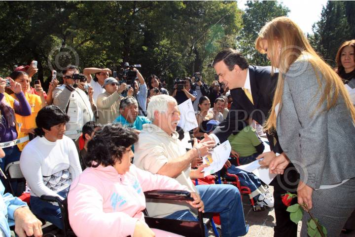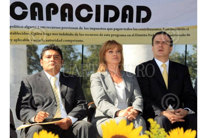 MÉXICO, D.F., 24NOVIMBRE2009.- El Jefe de Gobierno del Distrito Federal, Marcelo Ebrard Casaubon, acompañado por su esposa Mariagna Pratss entregaron 3,521 apoyos económicos del Programa Becas a Personas con Discapacidad. FOTO: CUARTOSCURO.COM