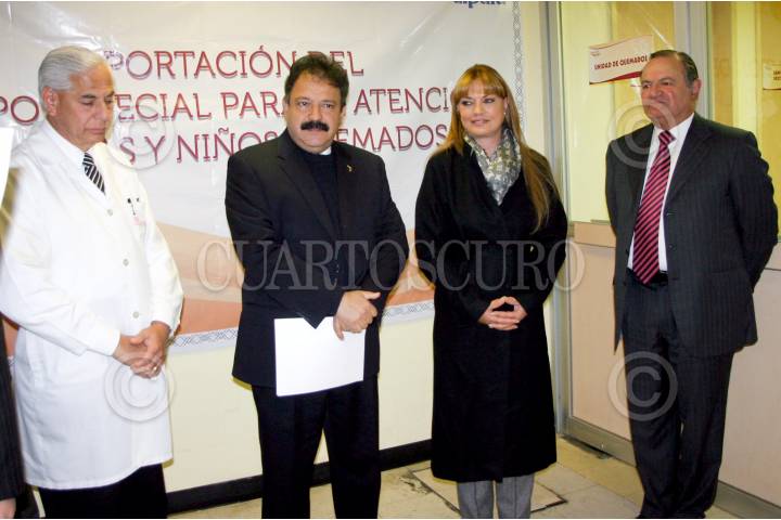 MÉXICO, D.F., 13ENERO2010.- Armando Ahued, Secretario de Salud en el Dif., conversa con Mariagna Prats, Presidenta del Patronato del DIF-DF, durante el evento donde se donó equipo medico al hospital Hospital Pediátrico de Tacubaya. FOTO: CUARTOSCURO.COM