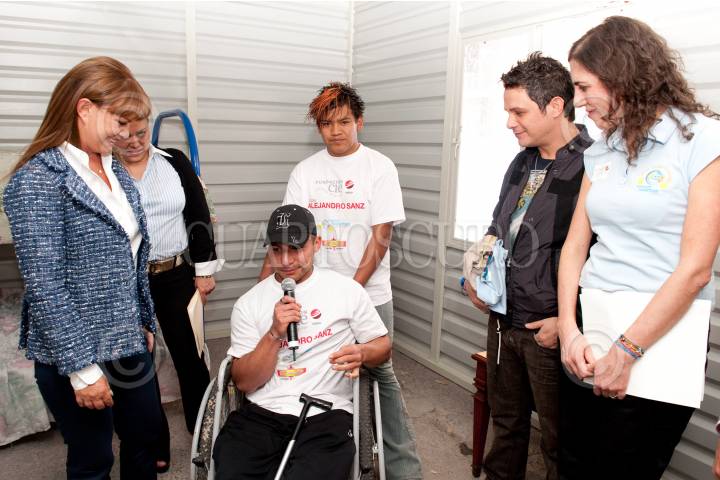 MÉXICO, D.F., 26FEBRERO2010.- La presidenta del patronato del DIF-DF, Mariagna Prats, y el cantautor español, Alejandro Sanz, durante su visita al "Centro Coruña", un albergue para chavos de la calle de ambos sexos de 13 a 21 años de edad donde realizaron un recorrido y entregaron donaciones. FOTO: CUARTOSCURO.COM