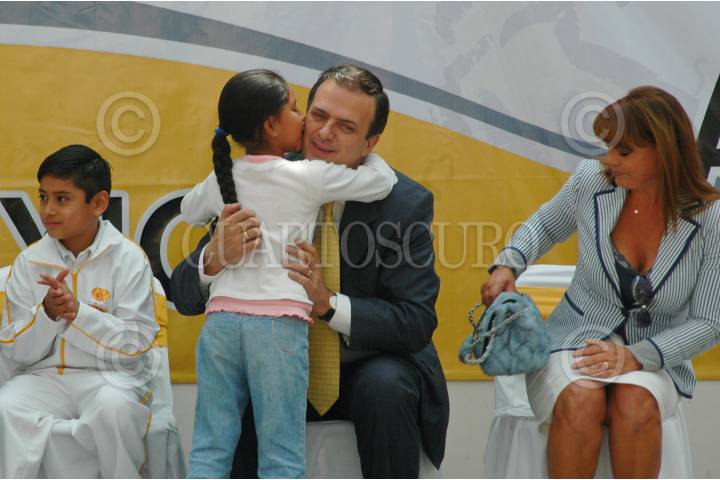 MÉXICO, D.F., 16MARZO2010.- Marcelo Ebrard, jefe de gobierno del D.F., acompañado de su esposa Mariagna Prats entregó tarjetas de estímulos económicos a menores que forman parte de los programas Niños Talento, Educación Garantizada y Becas Escolares en el Centro de Desarrollo Comunitario “República Española”. FOTO: RODOLFO ANGULO/CUARTOSCURO.COM