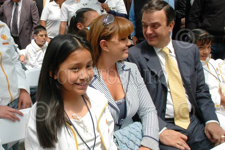 MÉXICO, D.F., 27OCTUBRE2009.- Marcelo Ebrard Casaubon, Jefe de Gobierno Capitalino jen compañia de su esposa, Mariagna Prats durante el evento donde entrego becas escolares a niños y niñas de escasos recursos. FOTO: ENRIQUE ORDÓÑEZ/CUARTOSCURO.COM