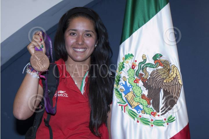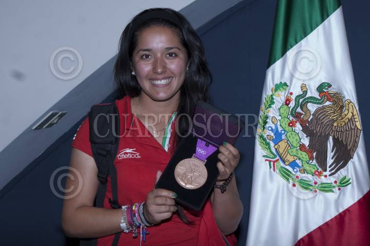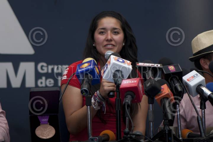 MÉXICO, D.F., 04AGOSTO2012.- La arquera regiomontana de 18 años de edad, Mariana Avitia, medallista de Bornce en los Juegos Olimpicos de Londres 2012, aseguró en conferencia de prensa a su arribo al Aeropuerto Internacional de la Ciudad de México que a partir del lunes su vida la hará de manera normal, ya que ese día regresa a clases y seguira entrenando de manera normal en espera del torneo nacional de Tiro con Arco. FOTO: FRANCISCO RODRÍGUEZ /CUARTOSCURO.COM