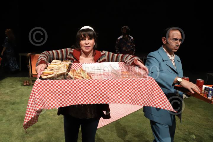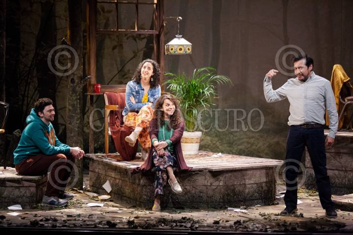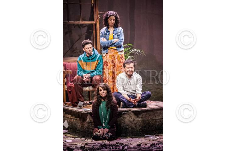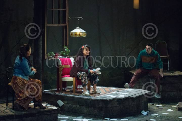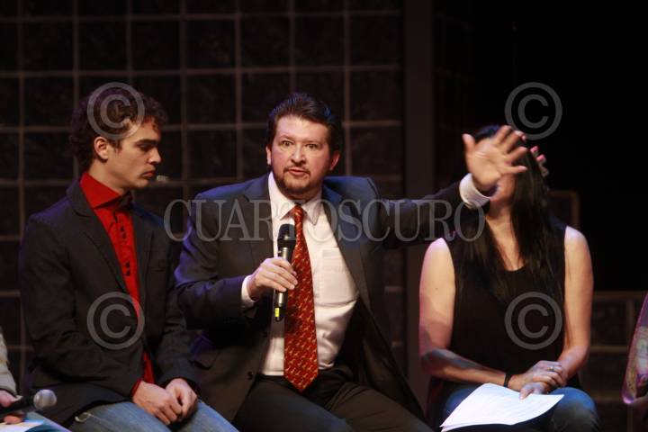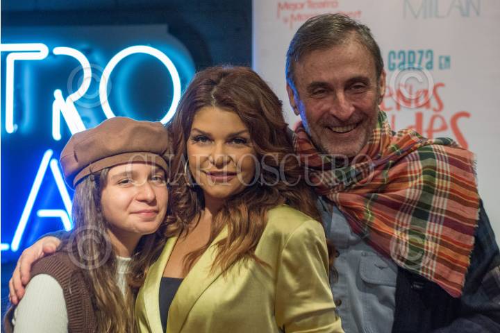 Nahomi Espinosa; Mariana Garza y Marcos Radosh, durante la presentación 200 de la obra “Pequeñas Grandes Cosas” con la dirección de Paula Zelaya Cervantes, en el Teatro Milán.