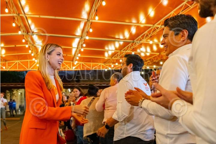 MONTERREY, NUEVO LEÓN, 31MARZO2024.- Mariana Rodríguez inició su campaña donde busca ser alcaldesa de Monterrey por Movimiento Ciudadano, acompañada del candidato presidencial Jorge Álvarez Maynez y militantes del partido. FOTO: CUARTOSCURO.COM