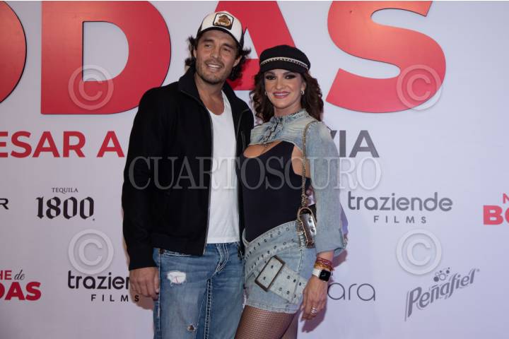 CIUDAD DE MÉXICO, 06AGOSTO2024. Adrian Huribe junto a Mariana Seoane a su paso por la alfombra roja que celebra el estreno de la película “El Candidato Honesto”, en una plaza al sur de la ciudad. FOTO: EDGAR NEGRETE LIRA/CUARTOSCURO.COM