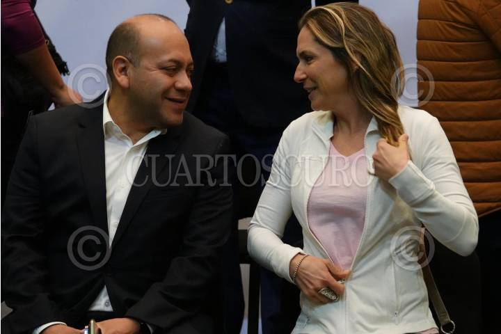 CIUDAD DE MÉXICO, 10DICIEMBRE2023.- Julio César Moreno, diputado federal por Morena, y Mariana Boy, procuradora Ambiental y del Ordenamiento Territorial, conversaron durante la presentación del equipo de precampaña de Clara Brugada, precandidata a la Jefatura de Gobierno por Morena, en el Club de Periodistas. FOTO: GRACIELA LÓPEZ /CUARTOSCURO.COM
