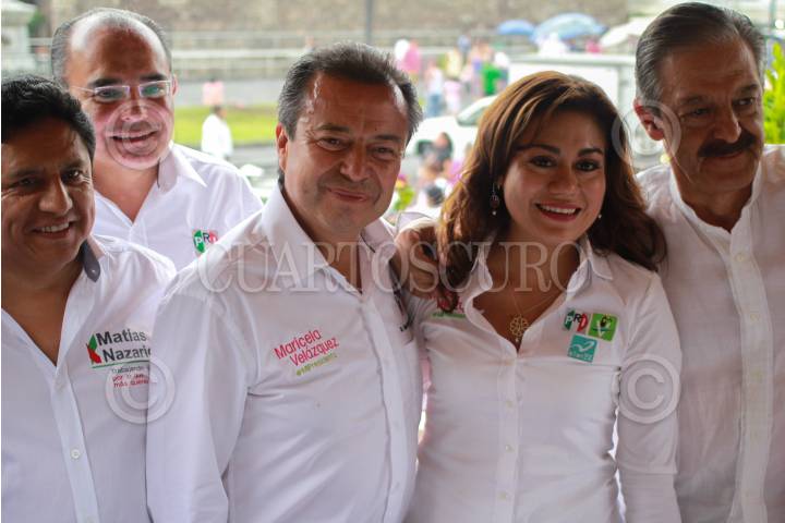 CUERNAVACA, MORELOS, 01JUNIO2015.- César Camacho Quiróz, presidente nacional de PRI asistió al centro de la ciudad donde se realizó el cierre de campaña de los candidatos por el partido tricolor. Previo al acto ofreció una conferencia con la candidata a la alcaldía de Cuernavaca, Maricela Velázquez y el presidente estatal del partido, Rodolfo Becerril Straffon. FOTO: PATRICIA MORALES /CUARTOSCURO.COM