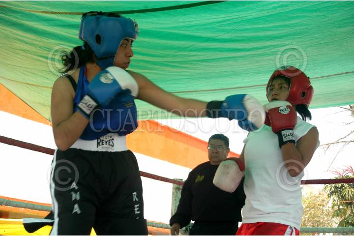 MÉXICO D.F. 30JUNIO2007.-Se llevo acabo la exibición de Box amateur en la explanada del mercado de la colonia Panamericana.En la imagen las boxeadoras, Mariela Marín (rojo) y Reyna Martínez (azul) durante su participación en esta exibición. FOTO: GUILLERMO PEREA/CUARTOSCURO.COM