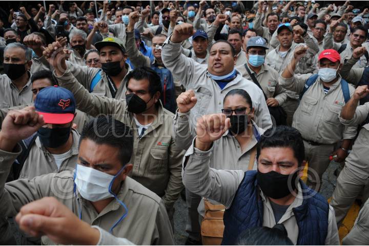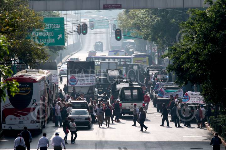 CIUDAD DE MÉXICO, 24OCTUBRE2019.- Integrantes del sindicato Petromex cerraron la circulación en avenida Marina Nacional, frente a la Torre de Petróleos Mexicanos (PEMEX), como expresión de descontento y nula atención por parte del director general Octavio Romero Oropeza, ellos exigen los reconozcan como sindicato de la paraestatal. Oscar Solórzano, vocero nacional de Petromex, y Yolanda morales secretaria general de Petromex, dieron un comunicado a medios en que declararon abrirían la circulación y que se trasladarían a las inmediaciones de la Secretaría de Trabajo y Previsión Social (STPS). FOTO: GALO CAÑAS /CUARTOSCURO.COM