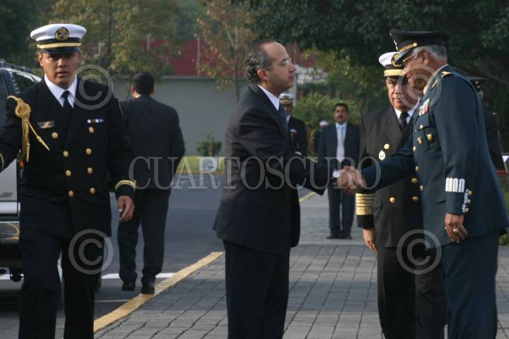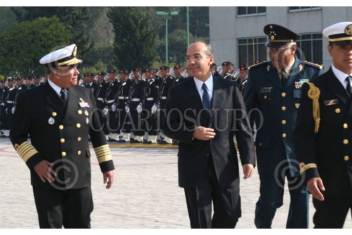 MÉXICO, D.F. 19DICIEMBRE2006.- El presidente Felipe Calderón Hinojosa desayunó este martes con personal naval encabezado por el secretario de Marina-Armada de México, Mariano Francisco Saynez y Guillermo Galván, secretario de la defensa nacional con motivo del fin de año. FOTO: PAOLA HIDALGO/CUARTOSCURO.COM